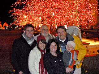 We also went to Temple Square with the family. We decided to ride using Utah's public transit system: Tracks...it was pretty fun. Although it was an extremely frigid night {of course, the only cold night Utah's had this entire season} we still had a blast and Asher LOVED all the bright lights.
